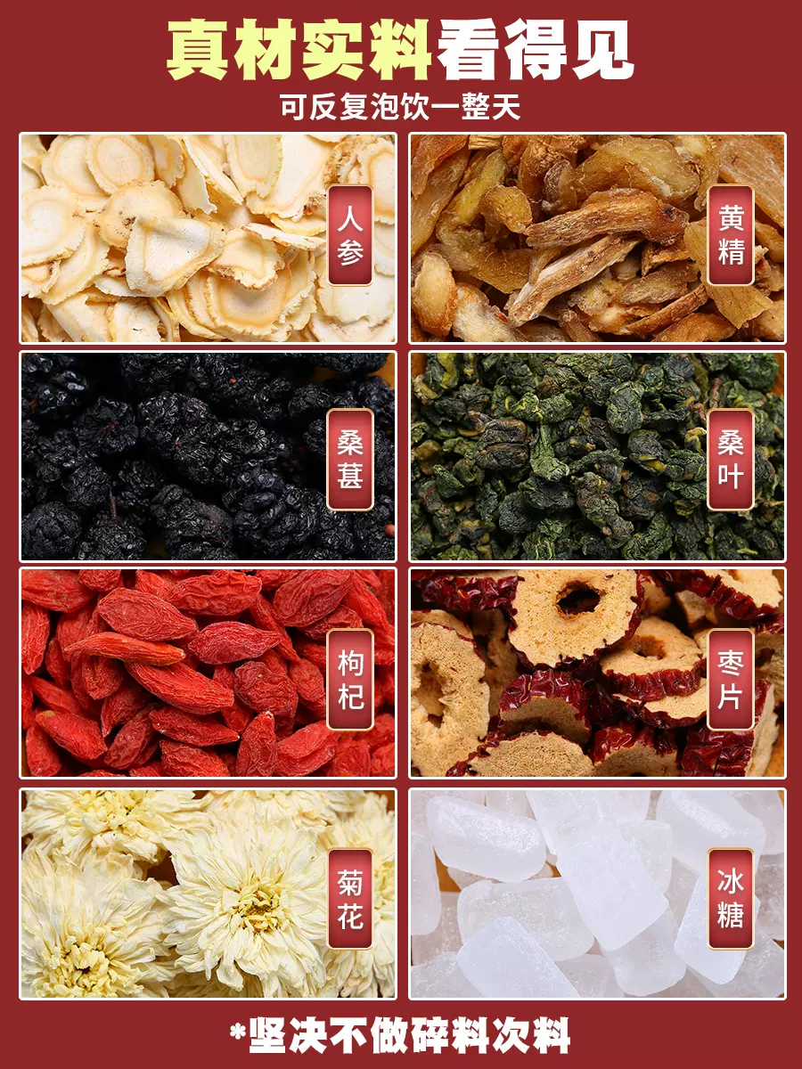 人参八宝茶菊花枸杞桑葚黄精疲劳补红枣气血