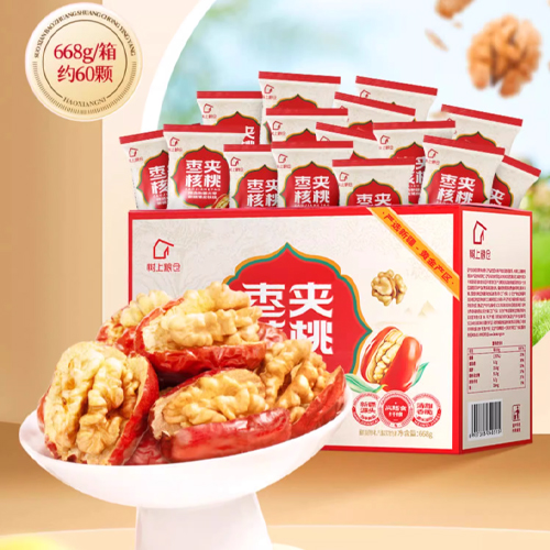 • 红枣夹核桃 黑金枣新疆灰枣特产和田大枣夹心枣仁派礼盒